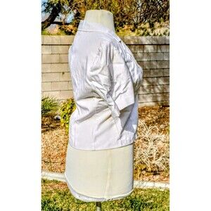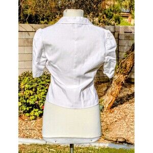 1980s Ivory Linen Polyester/Rayon S/S Womens Petite Small Blazer Button Top EUC