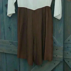 1980s Ivory and Brown Colorblock Jumpsuit Minimalist Romper Size Medium