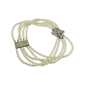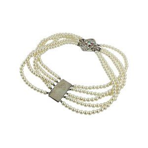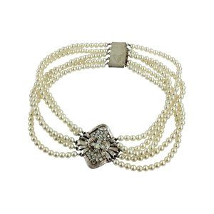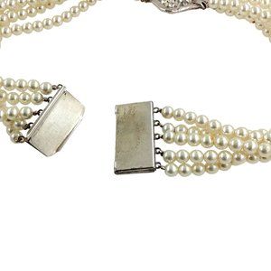 * Gorgeous Five Strand Pearl Necklace with Embossed Diamond Shape Front Accent