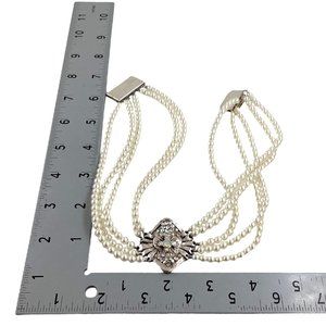 1980s Jacky de G Paris Runway Pearl Necklace, Dog Collar Choker, Cream Glass Pearls, AB Crystals, Silver Plated, 5 Stings, Diamond Shaped Front, Bridal Prom Special Occasion Accessory, Vintage Collectible Jewelry, Very Rare