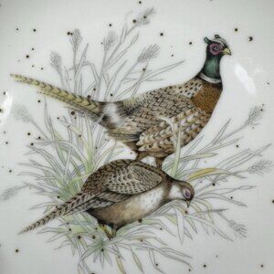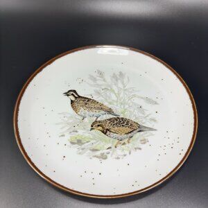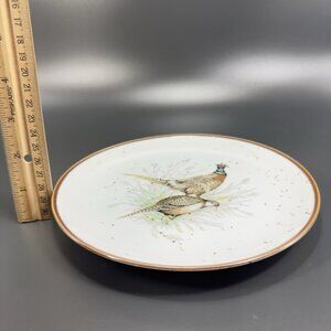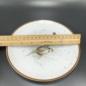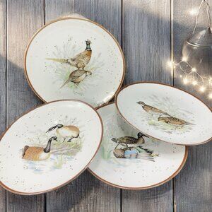 1980s Japanese Stoneware Pottery Dish Plate Set 4 Bird Scene Round Dishes VTG