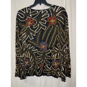 1980s Jean for Joseph Le Bon Silk Beaded Glam Regency Swiftie Glitz Cardigan XXL