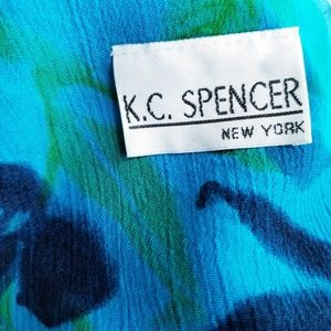 1980s K.C. Spencer Blue/Green Tropical Dress