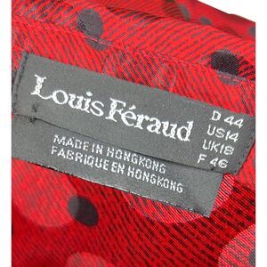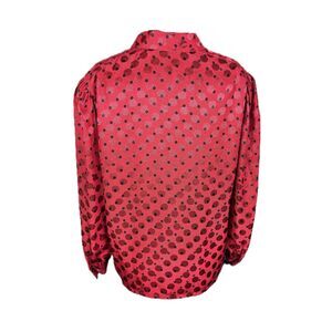 Vintage 80's red patterned blouse by famed French designer Louis Féraud. Excellent vintage condition.Marked a size. 14 but that is vintage, designer sizing! This fits much smaller. Recommend for a size M as the blouse is meant to have an oversized, billowy fit as was the style at the time, but may fit a size L. Please check measurements below to ensure best fit.