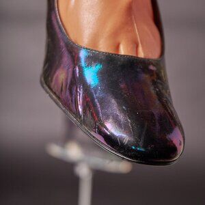 1980s Metallic Iridescent Black Pumps Heels Shoes