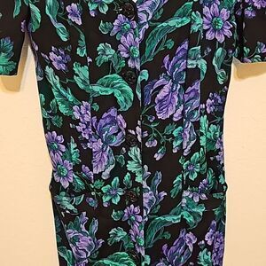1980s Midi Sheath Vintage Dress Pockets Purple Green Black All That Jazz