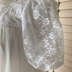 White nylon, chiffon and lace peignoir in very good condition (minor picks)