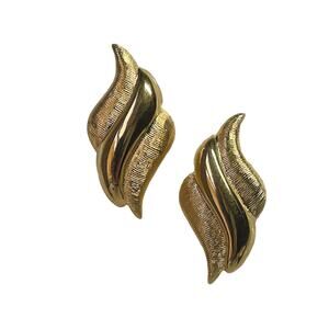Simple & elegant textured & polished gold plated angel wing stud earrings circa 1980's. Hallmarked Napier on a cartouche on the back side, each measure 1/8 inch to 3/4 inch wide 1-1/2 tall. Although pre-owned, these earrings are in excellent condition with very small scratches. No metal wear. They come with to post backs they were found with. Consider the pictures to be part of the description. Don’t hesitate to ask any questions.