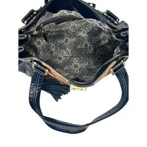 1980s Original by Sharif LEATHER & SUEDE HANDBAG Blue Brown Shoulder Purse Y2k