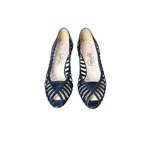 These 1980s Pappagallo shoes are "New Old Stock" - never worn. They are made of high quality leather in a navy blue color. They are very stylish, featuring cage sides and peep toe. Made in Spain. ize 8 1/2 Narrow. Excellent condition.