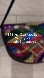 This Partners Mervyns crossbody bag showcases a striking colorful beaded patchwork design with rich blue sections and a black trim. Its half-moon shape and soft strap make it a versatile accessory for any occasion.
