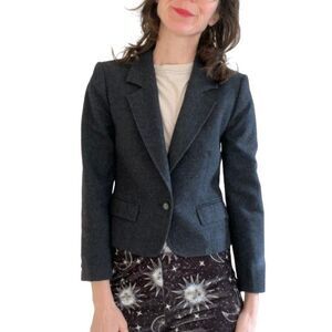 Grey wool blazer in size 6 petite. Classic style. Wool and polyester lined.