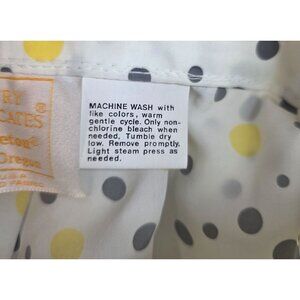 A vintage treasure, this 1980s Pendleton skirt features a high-waisted, pleated design with cheerful polka dots in gray and yellow on white fabric. Truly timeless craftsmanship.