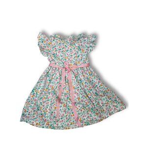 1980s Popsicle Girls Floral Ruffle Toddlers Dress Size 5 Pink Green Orange Blue