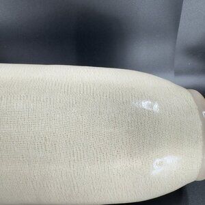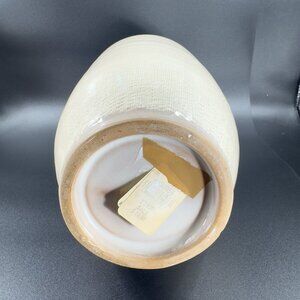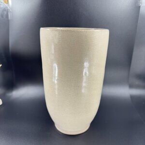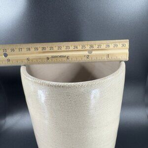 1980s Pottery Linen Straight Sided Vase in Beige on Cream Ceramic Vessel W Tag