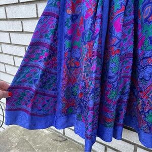 1980’s Rare Vintage Diane Freis Silk Dolman V-Neck Godet Dress Purple Abstract