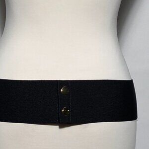 1980s Thick Black Leather Belt Snap Back Elastic Closure