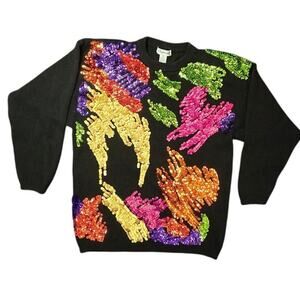 1980s VTG EMINENT Oversized Multicolored Sequins Tunic Sweater Size Large