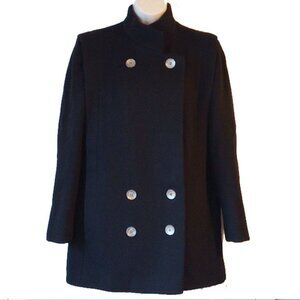 1980's VTG Larry Levine Double-Breasted Wool Pea Coat Black - Made In USA