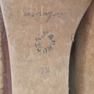 1980s Vintage Brown Suede Folded Slide On Slouch Wide Leg Almond Toe Boots 7M