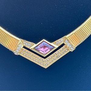1980s Vintage Dior V-shaped rhinestones Necklace.