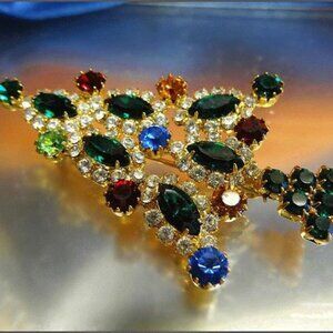 This is a stunning Christmas tree pin to behold! It is a vintage Juliana style Christmas tree.