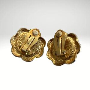 1980s Vintage Gold Toned Daisy Statement Clip On Earrings, Boho, Retro
