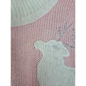 1980s Vintage JP Val Pink Grey Reindeer Sweater Wool Angora Blend Sz M