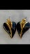 1980s Vintage JS Gold Tone & Black Enamel Heart Shaped Articulated Earri…