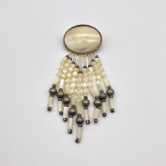 1980s Vintage Long Beaded Pin - Mother of Pearl Brooch
