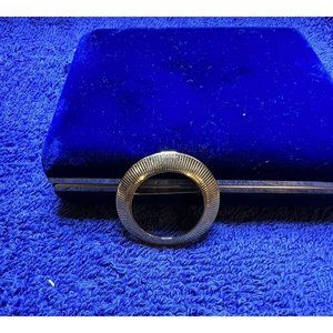 Dive into the timeless appeal of the 1980s with this vintage Monet circular brooch. This piece, elegantly crafted in a textured gold tone, encapsulates the unmatched quality and design prowess of Monet's creations. The intricate texture adds depth and character to the brooch, allowing it to shimmer in varying lights, creating a captivating visual play. Measuring at a versatile size, this brooch can be the perfect accessory to elevate any ensemble, from everyday wear to special occasions. Its condition is a testament to its craftsmanship and care over the years, with every texture and curve preserved to perfection. Whether you're a lover of vintage jewelry or new to the allure of Monet, this brooch promises to be a cherished addition to any collection