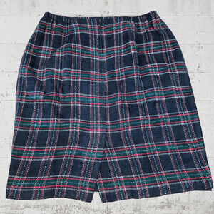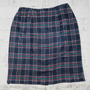 1980s Vintage Navy Red Tweed Glen Check Plaid Tartan Knee Length Skirt Size 4