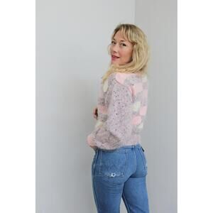 1980's Vintage Pastel Fleck Fuzzy Mohair Sweater ~ Women's Extra Small XXS XS