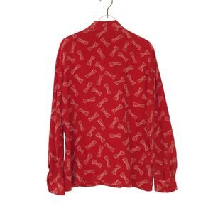 1980s Vintage Red Silk Button Down Collared Blouse with Polka Dot Bows Small