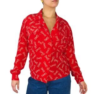 1980s Vintage Red Button Down Blouse with White Bows with Polka Dots. Retro Vintage Blouse, Reminds me of Minne Mouse.