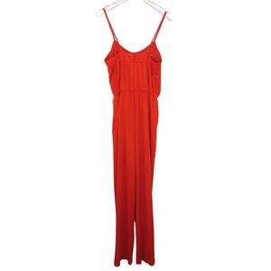 1980s Vintage Red Sleeveless Wide Leg Jumpsuit Playsuit Flared Leg Small Medium