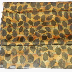 1980s Vintage Scarf Long Chiffon lightweight leaf print tan brown classic retro