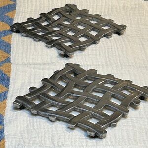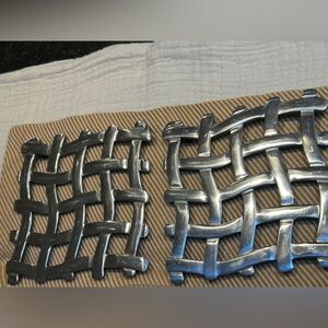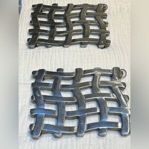 1980s Vintage Stainless Steel Silver Woven Metal Trivet Easy Hang Small Spaces