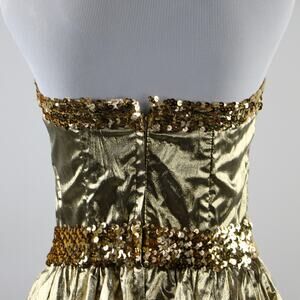 1980s XS Metallic Gold Strapless Gunne Sax Dress with Gold Sequin Belt