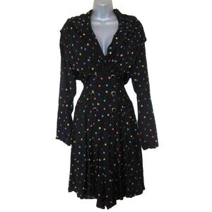 shawl collar pleated pleats double breasted colorful rainbow polkadots polka dots dotted 80s 1990s 90s shorts long dolman sleeves 10 12 pink yellow green purple gold button down new wave jumpsuit