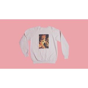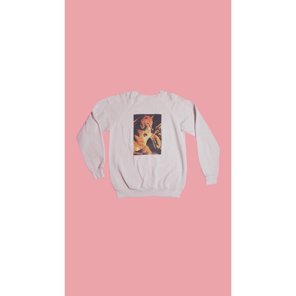 1980s-1990s Hanes Activewear orange cat portrait white sweater.
