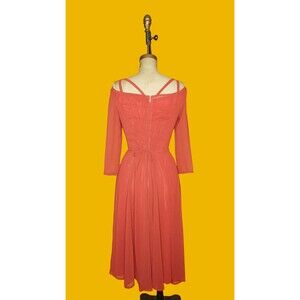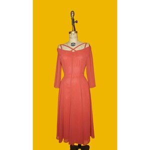 1980s-1990s MODELLI PARIS Rust Orange CORSET Back Off Shoulder Cut Out Dress. S