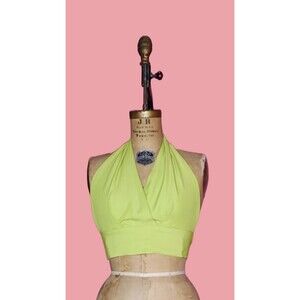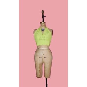 1980s-1990s PALOMA COLLECTION CHARTREUSE. Rayon Halter Crop Top. S-M