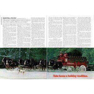 1981 Budweiser Beer Christmas Clydesdales Dalmation Dog 2pg Vintage Print Ad Art