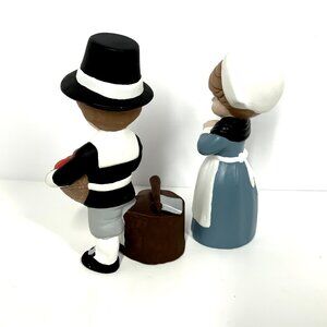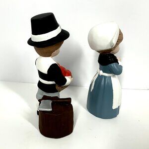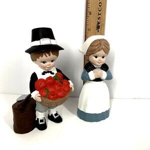 1981 Hand Painted Ceramic Boy & Girl Pilgrim Thanksgiving Figurines Dona's Mold