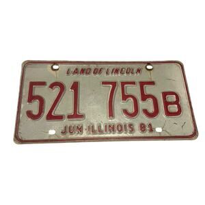 1981 Illinois License Plate Tag # 521 755B White Land of Lincoln