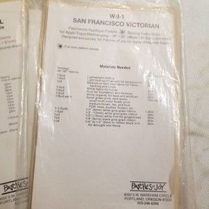 1981 Patches of Joy lot of 3 applique wall hanging patterns by Joyce Kelly. WB-1 San Francisco Victorian 18" x 32". WB-7 Southern Colonial 29" x 18". and WB-5 Williamsburg Colonial 33" x 17". good condition instru. and patterns included in all 3. have not been cut/used. I have bunches of vintage patterns listed. Search hashtag NikisPatterns and they'll all come up in a list for you. NOTE: If you would like a bunch of patterns, I'll make you a bundle deal!