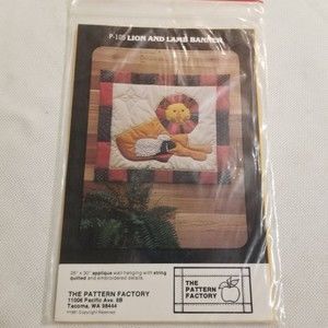 1981 The Pattern Factory Lion and Lamb Banner pattern. 26" x 30" finished size. Good condition. I have bunches of vintage patterns listed. Search hashtag NikisPatterns and they'll all come up in a list for you. NOTE: If you would like a bunch of patterns, I'll make you a bundle deal!