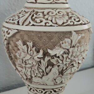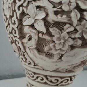 1982 Chinese Carved RESIN White Cinnabar Vase 8" IVORY DYNASTY