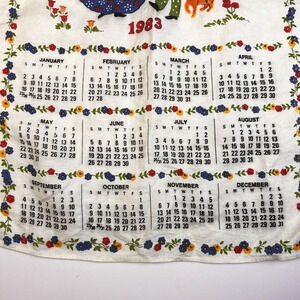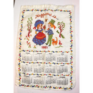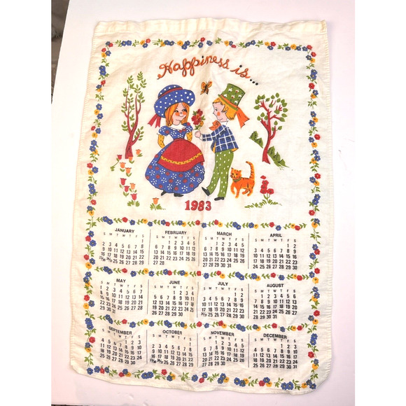 1983 Calendar Tea Towel 'Happiness Is' Vintage Linens Young Love 80's Kitchen